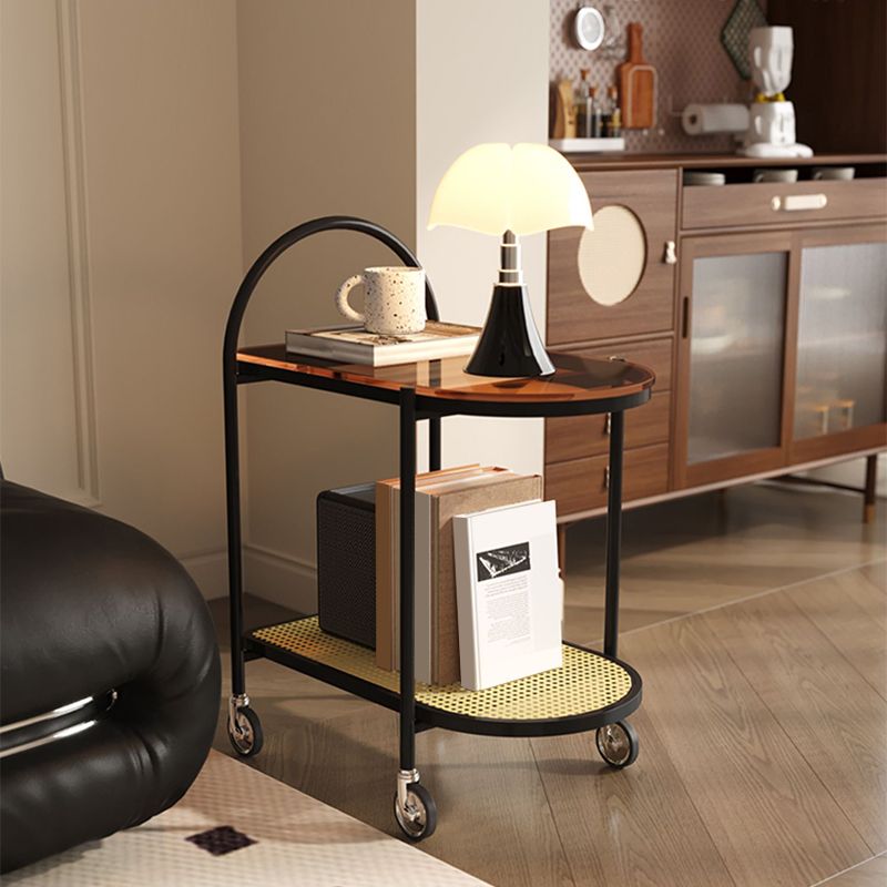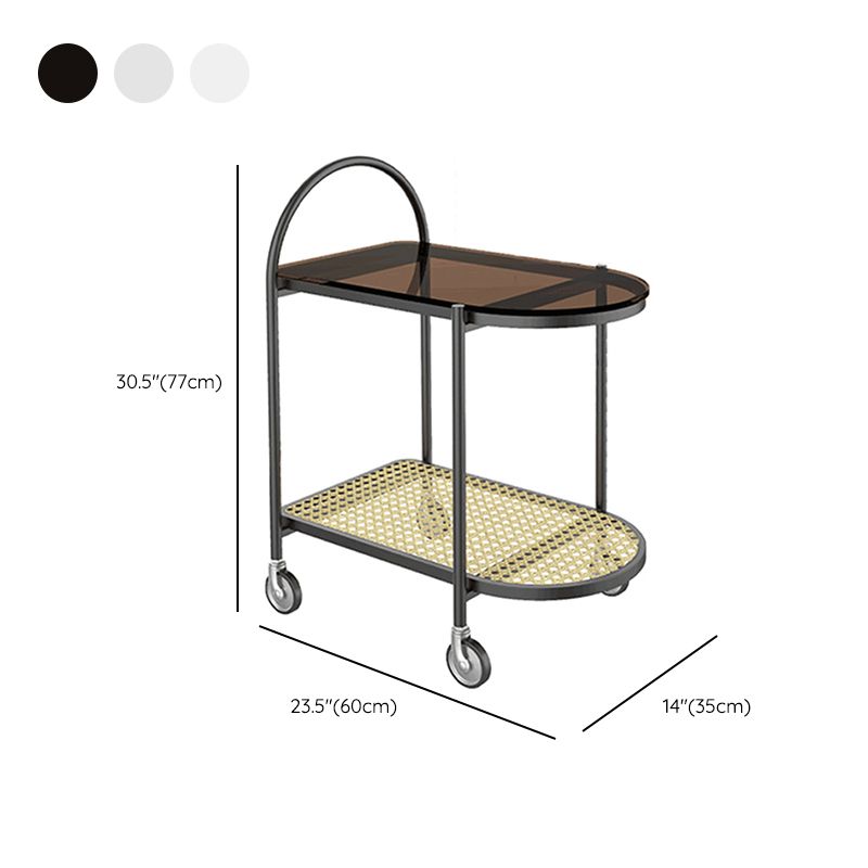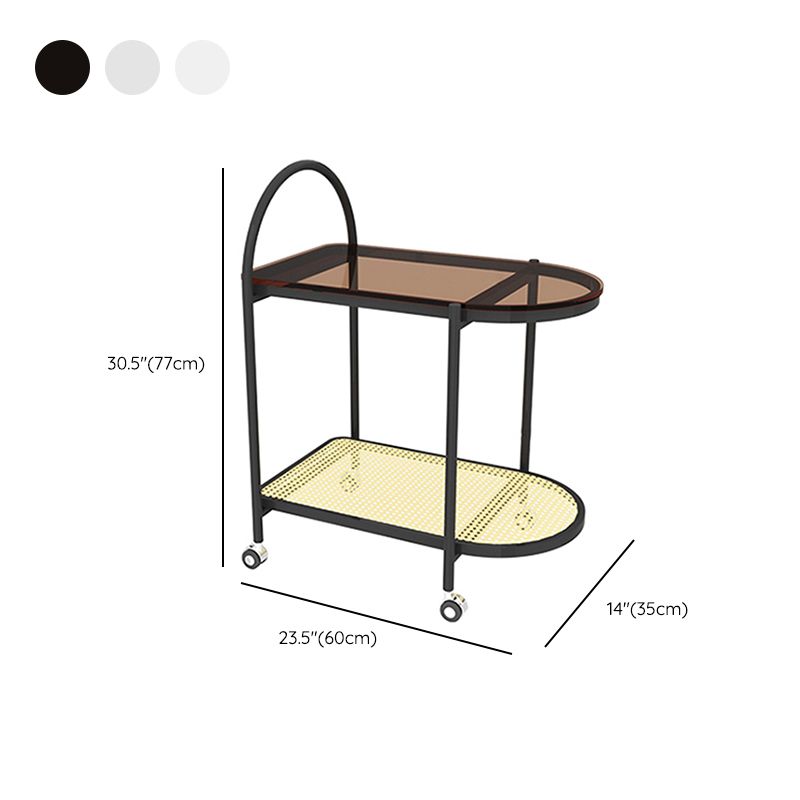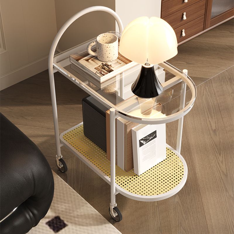 23.62" Wide Metal Side Table Oval Glass Top Sofa Side Accent Table