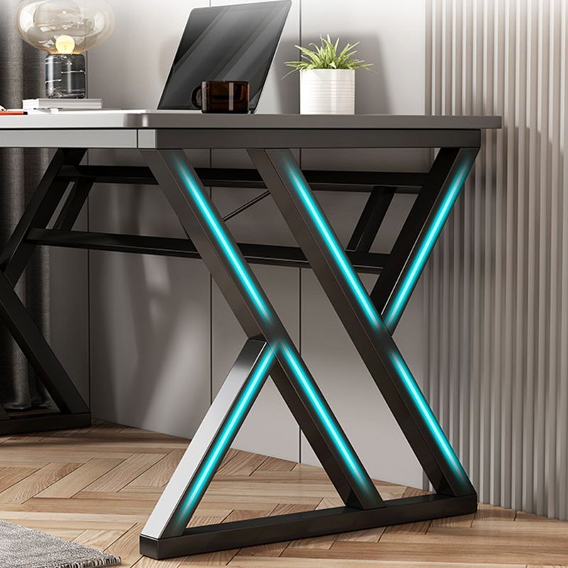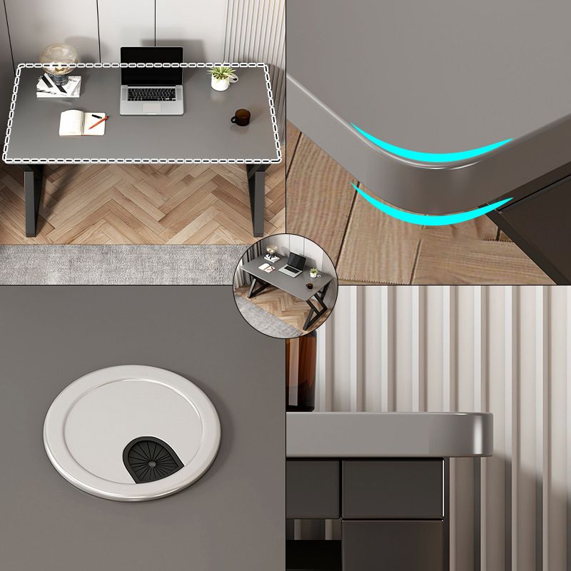 29.53" H Industrial Office Desk Antique Finish Curved Computer Desk