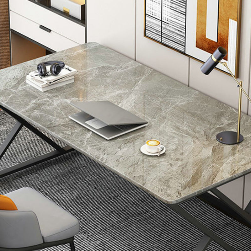 29.53" Tall Stone Writing Desk Rectangular Modern Writing Desk with Iron Legs