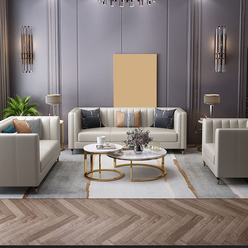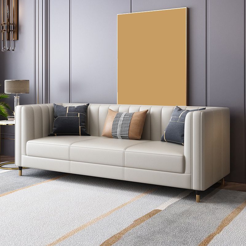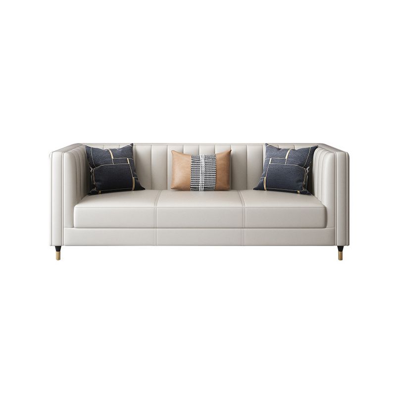 30.7" H Genuine Leather Sewn Pillow Back Tuxedo Arm Sofa for Living Room