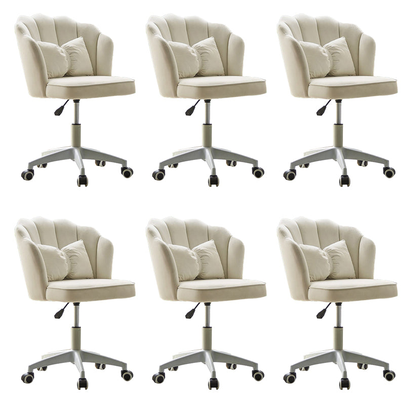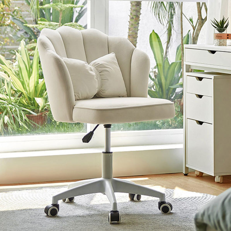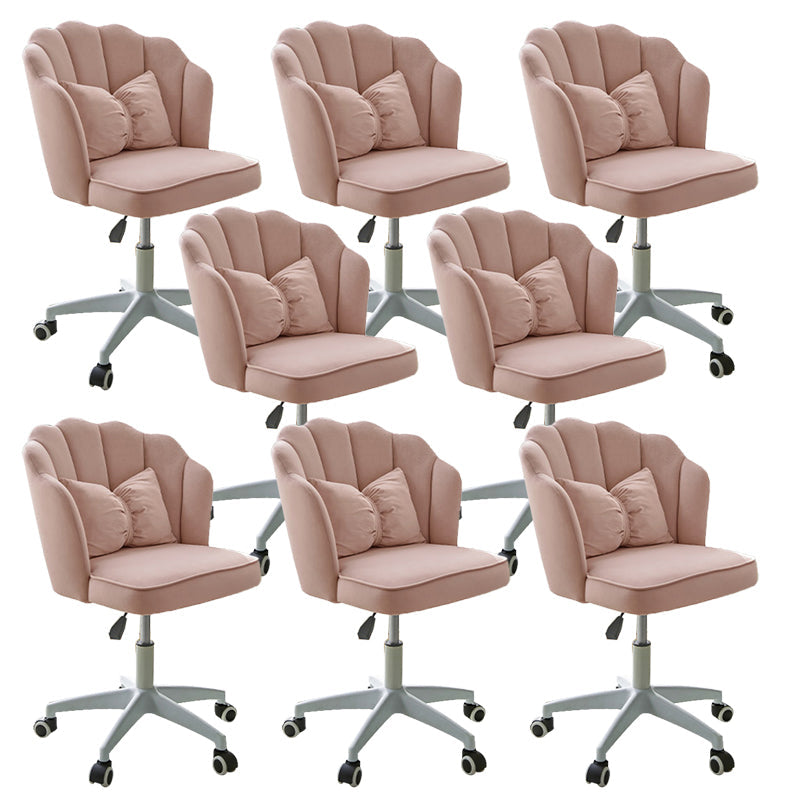 Armless Office Chair White/Pink Desk Chair with Wheels for Living Room