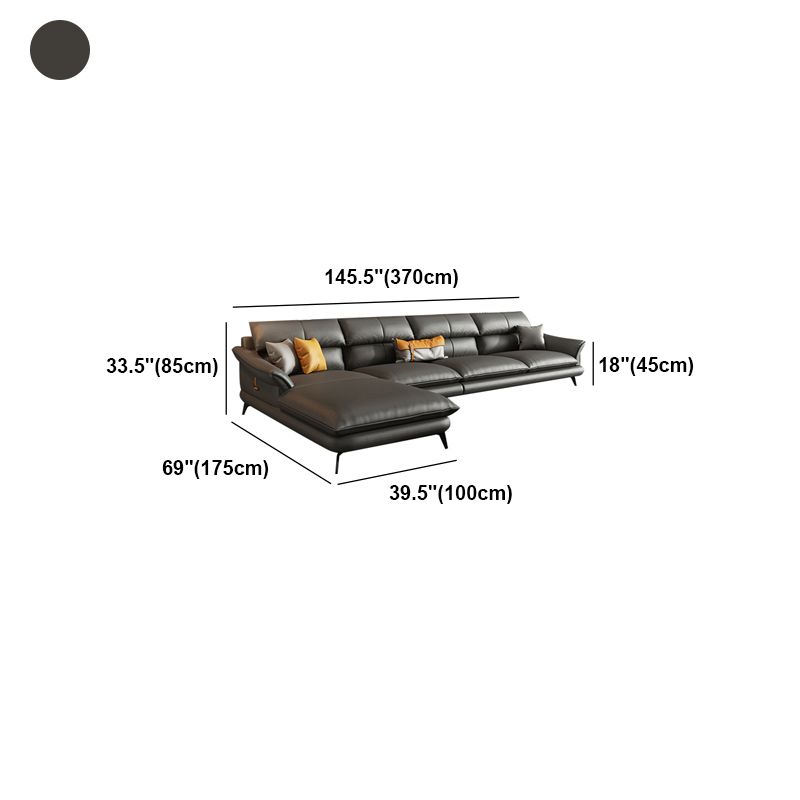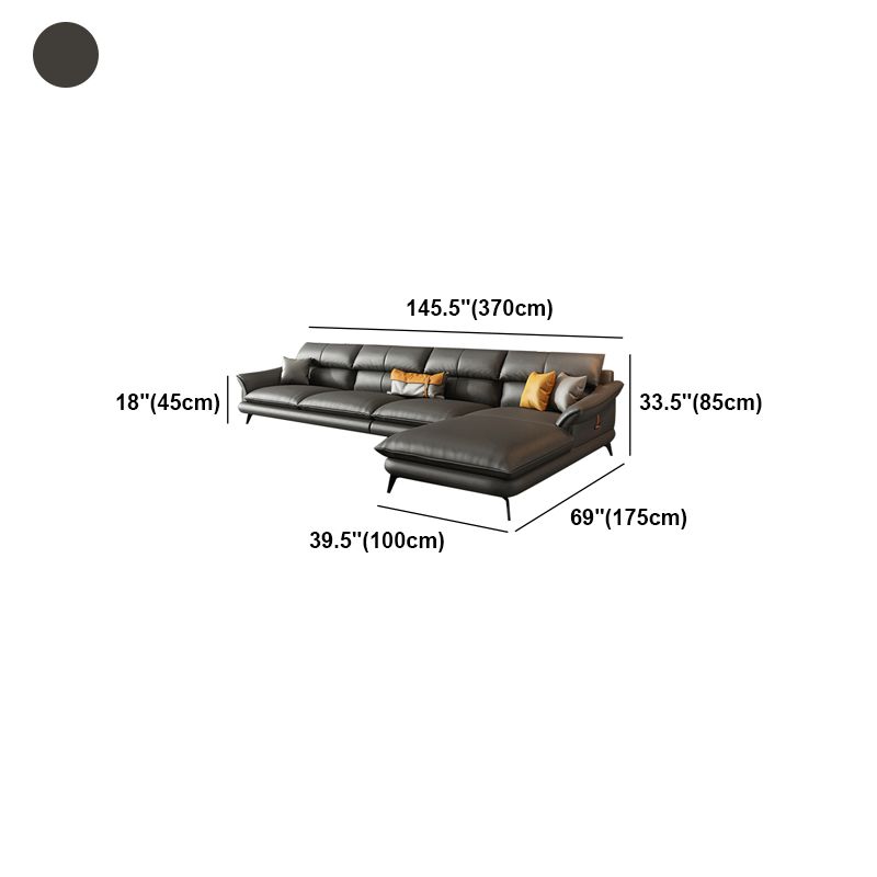 Black Genuine Leather Sectionals/Sofa with Pillow Back for Living Room