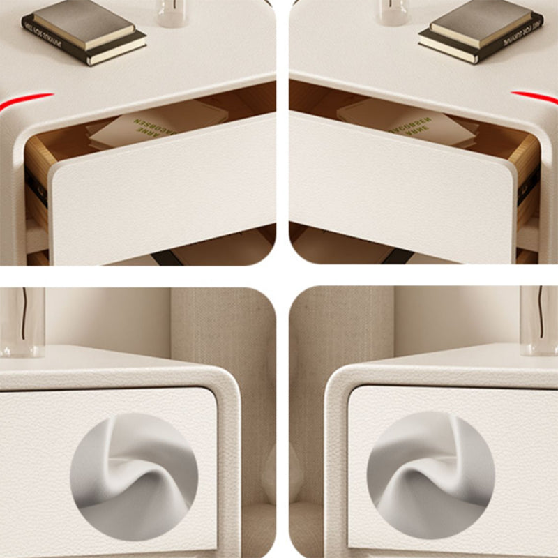 Contemporary Accent Table Nightstand Faux Leather Bedside Cabinet