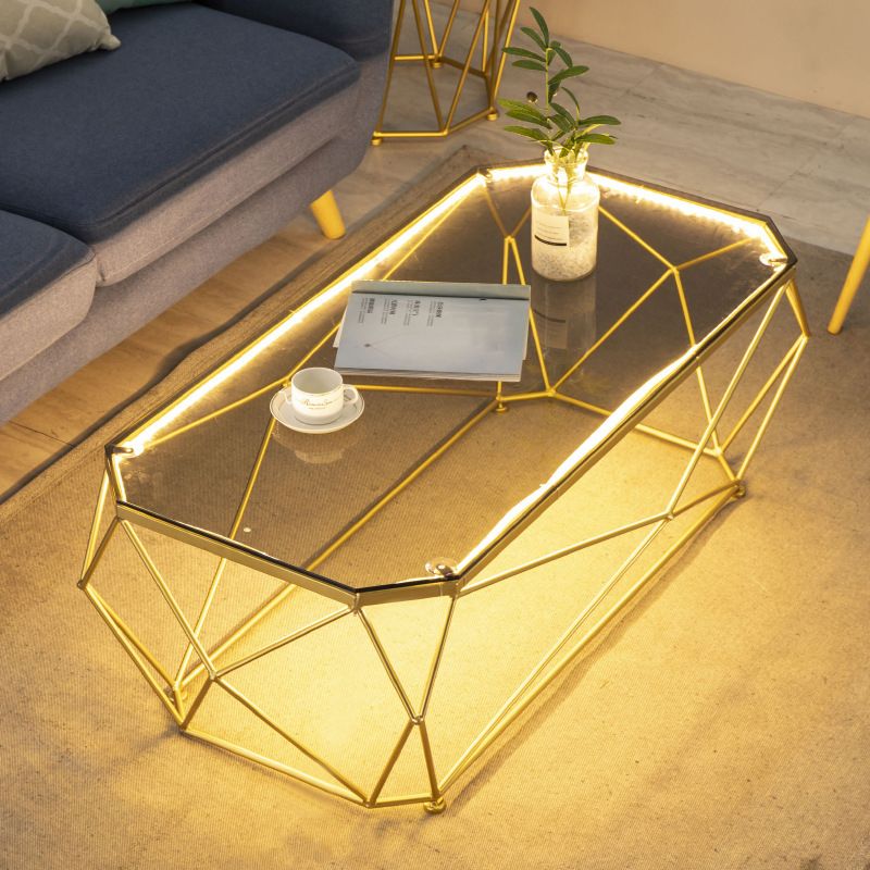 Contemporary Cocktail Table Glass Top Rectangular Single Coffee Table