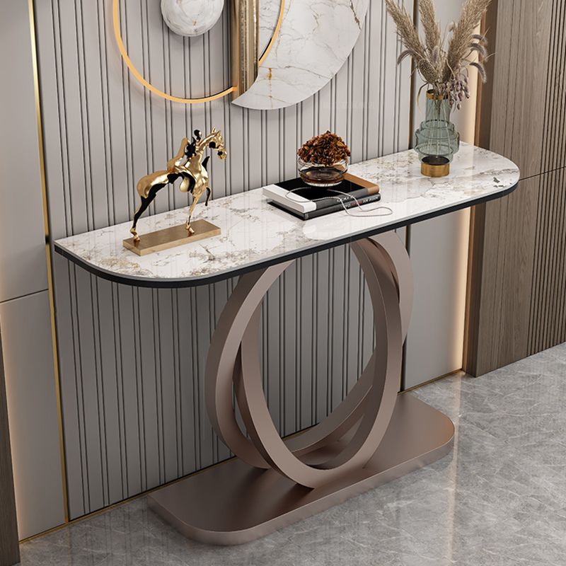 Contemporary Console Table Stone Half Moon Accent Table , 13.78" W