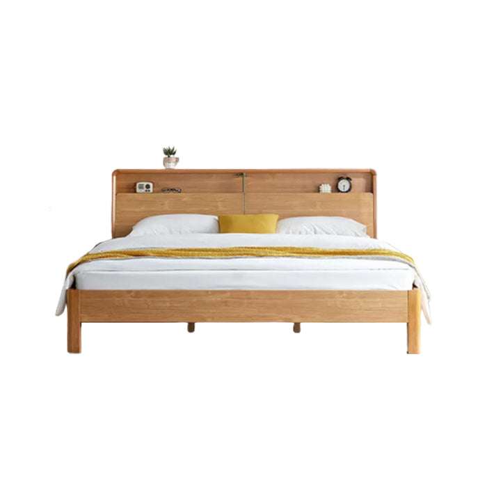 Contemporary Panel Bed in Natural Solid Wood Bed with Rectangular Headboard
