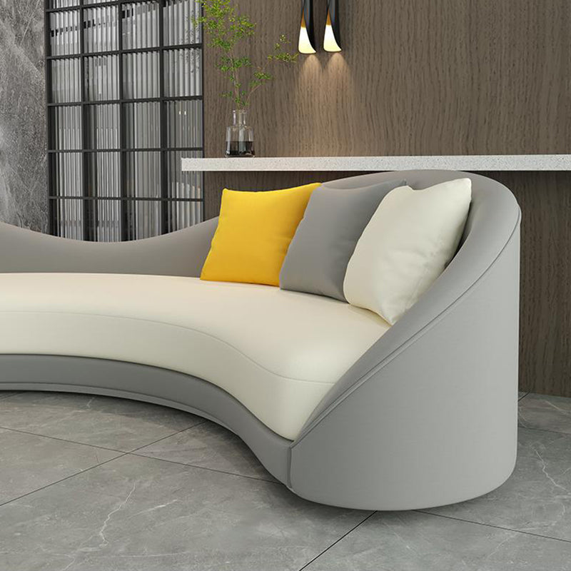 Contemporary Sloped Arm Curved Sofa Faux Leather Camel Back Sofa