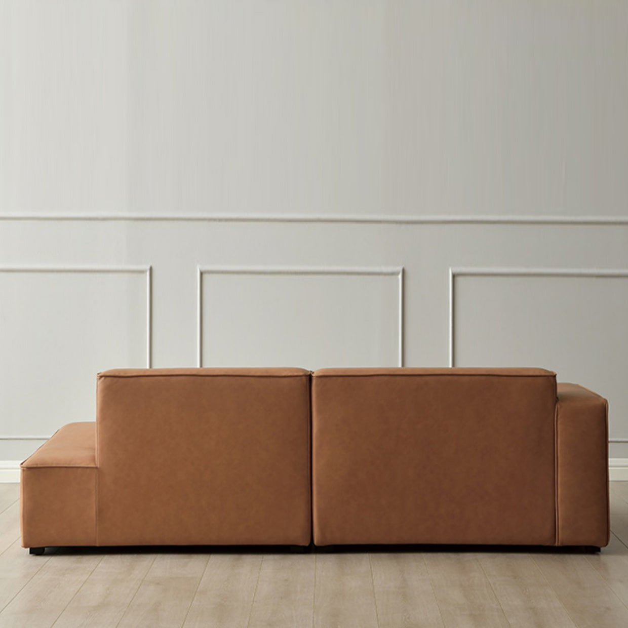 Contemporary Stationary Faux Leather Living Room Square Arm Sofa