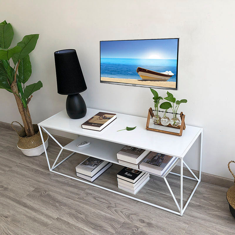 Contemporary Style TV Stand 2-shelf Open Storage TV Media Stand