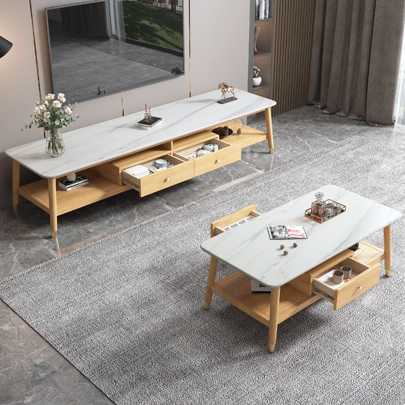 Contemporary Wood TV Console Open Storage TV Media Stand with Legs for Living Room