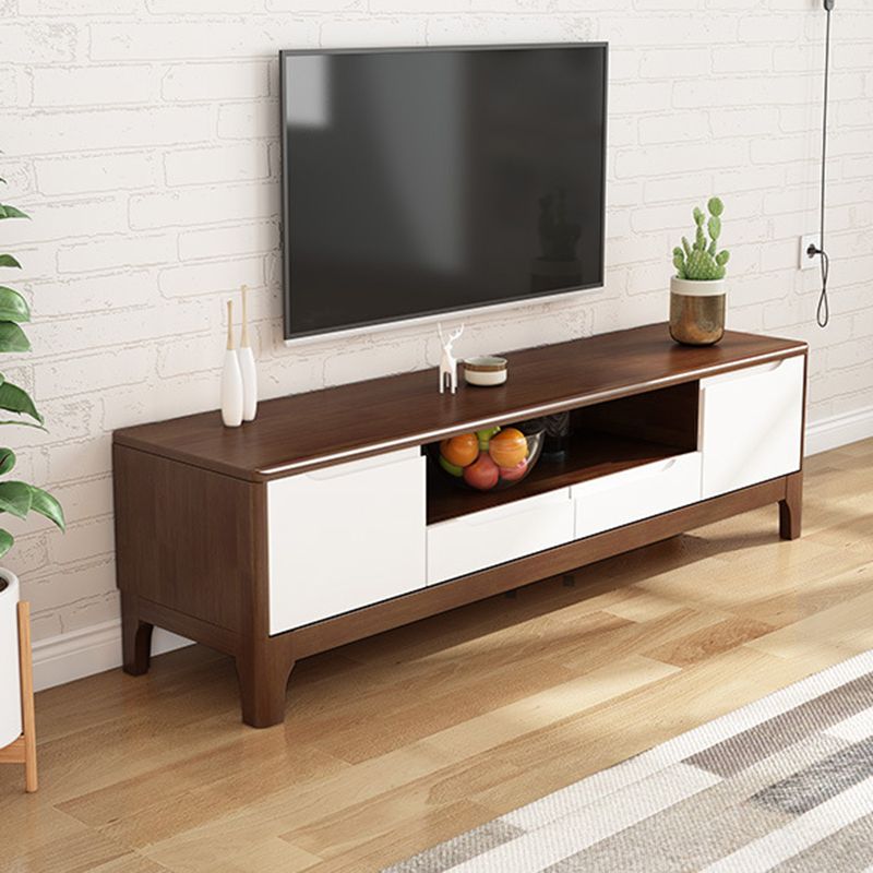 Contemporary Wood TV Console Open Storage TV Stand for Living Room