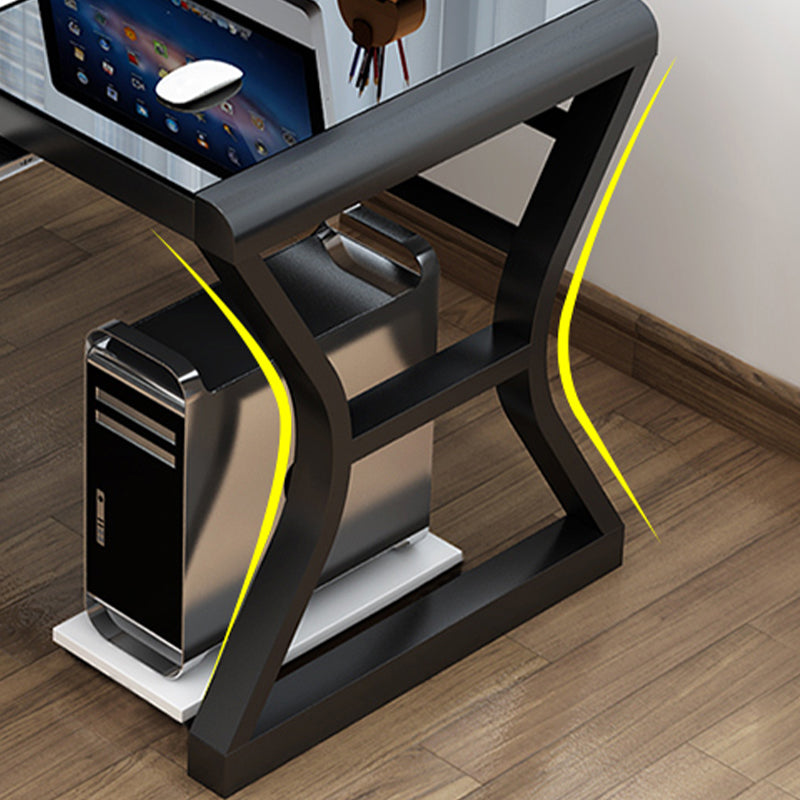 Contemporary Writing Desk Antique Finish Glass Top Office Desk with Metal Legs