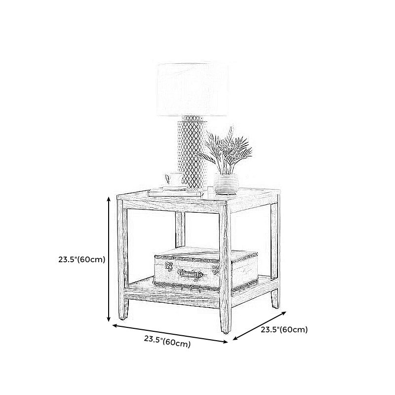 Farmhouse Square Wood Top End Table Double Tier Sofa Side Table with Storage