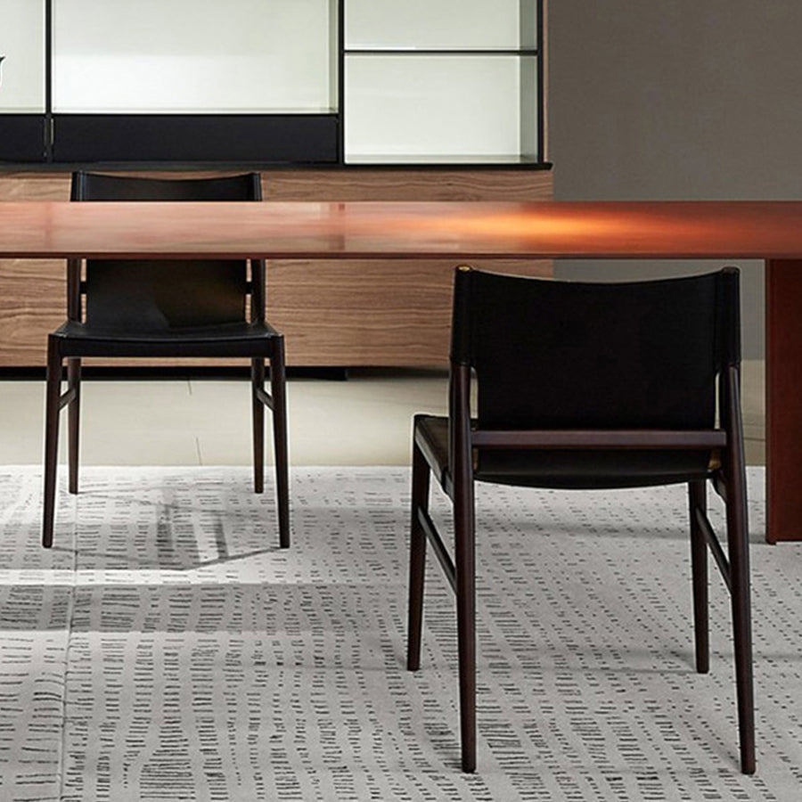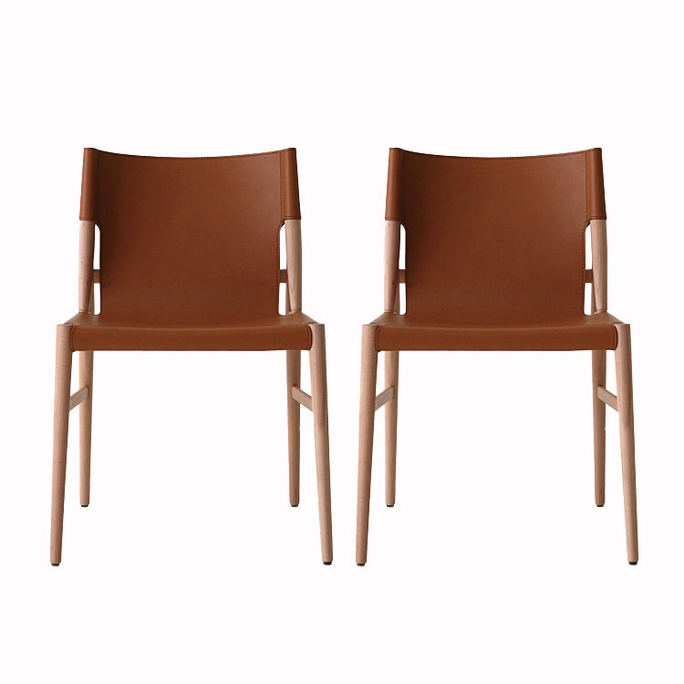 Faux Leather and Wood Armless Dining Chairs Modern Side Chair Set