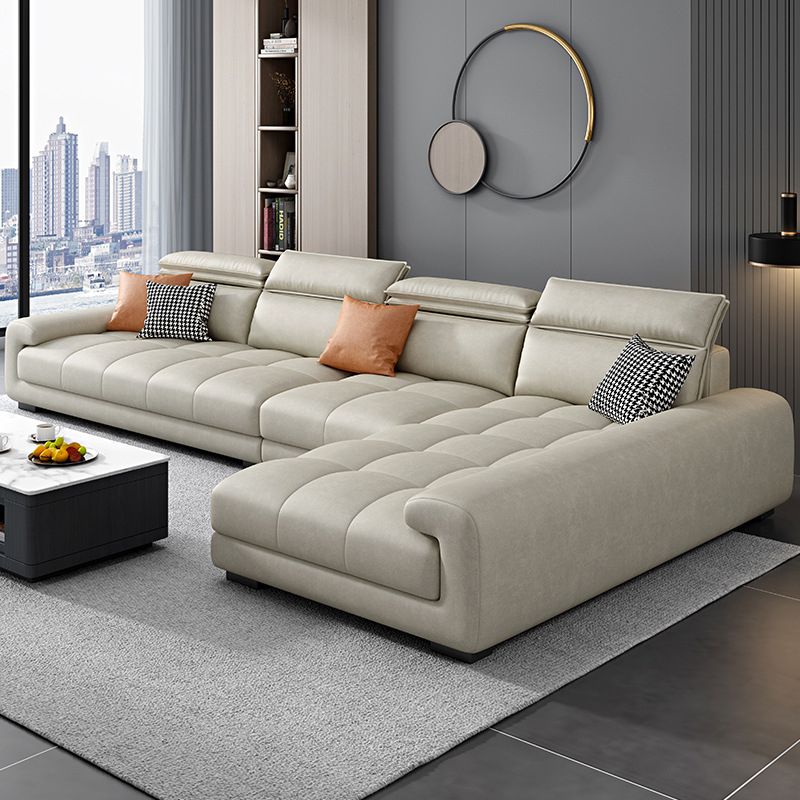 Faux Leather L-Shape Sectional with Adjustable Head Pillow for 4 People