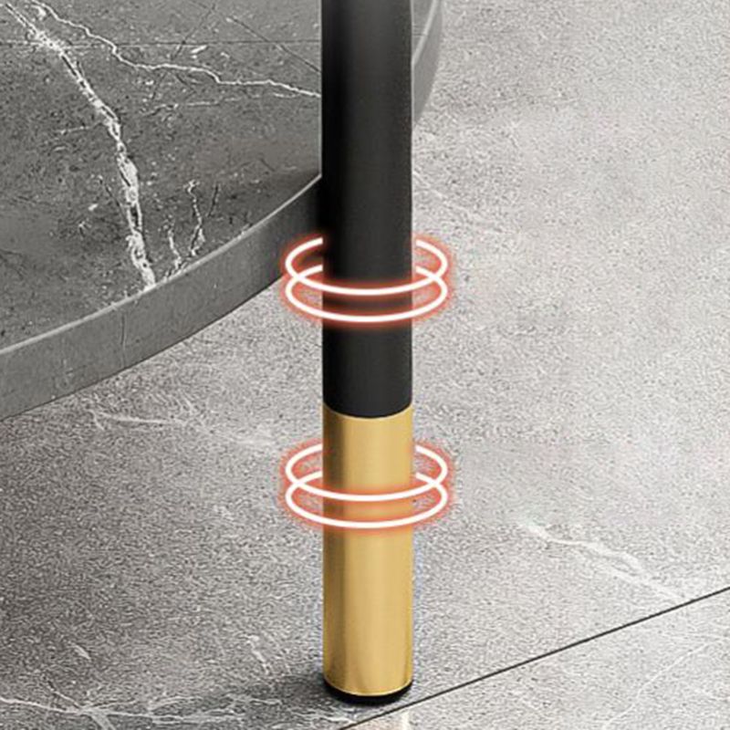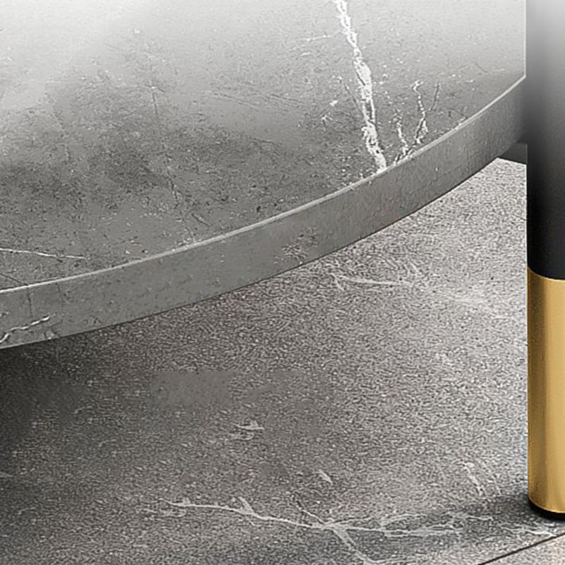 Faux Stone Round End Table Shelf Included Side Table in Black/Grey