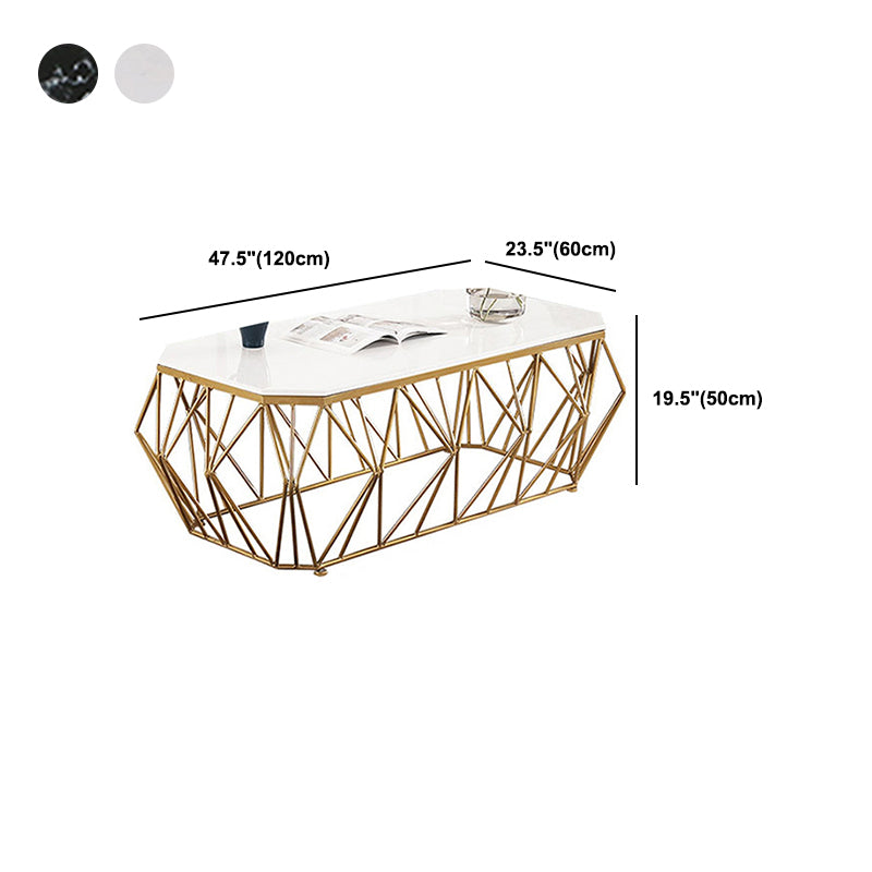 Glam Coffee Table with Iron Frame and Marble Top Cocktail Table