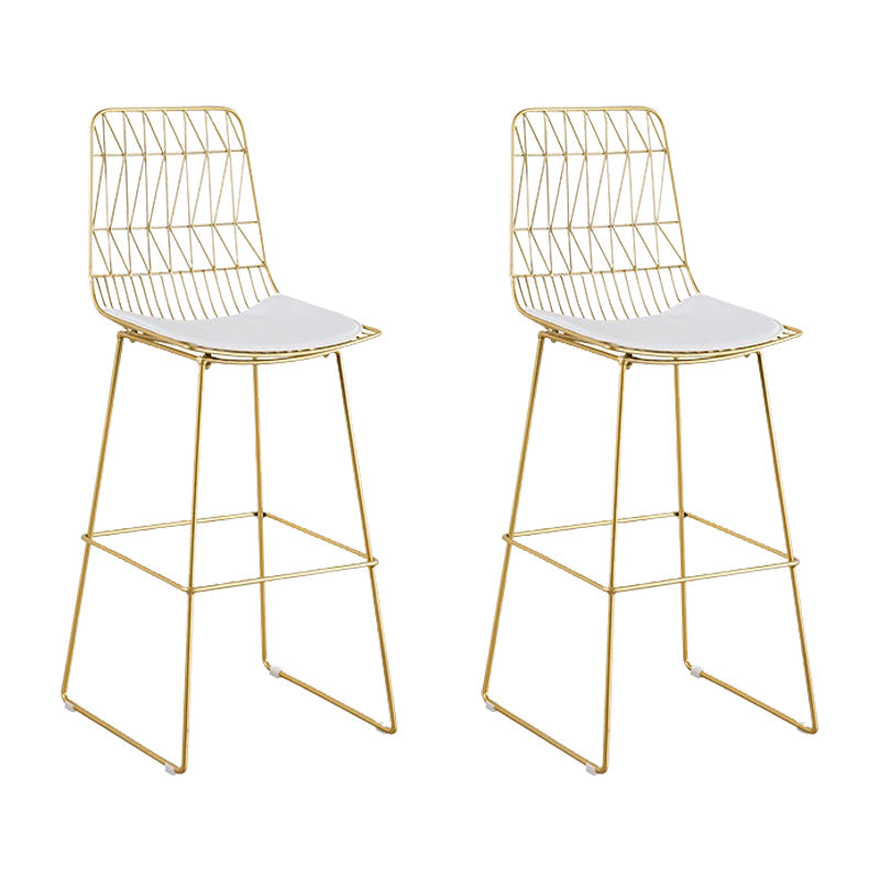 Glam Metal Barstool Fabric Cushion Velvet Stool in Matte Finish for Indoor