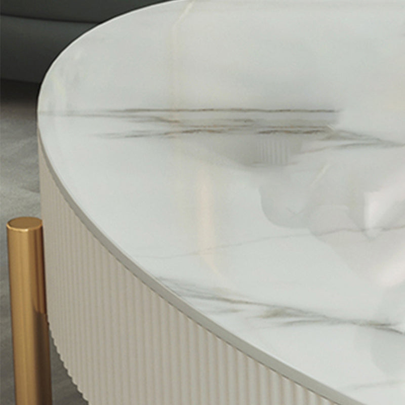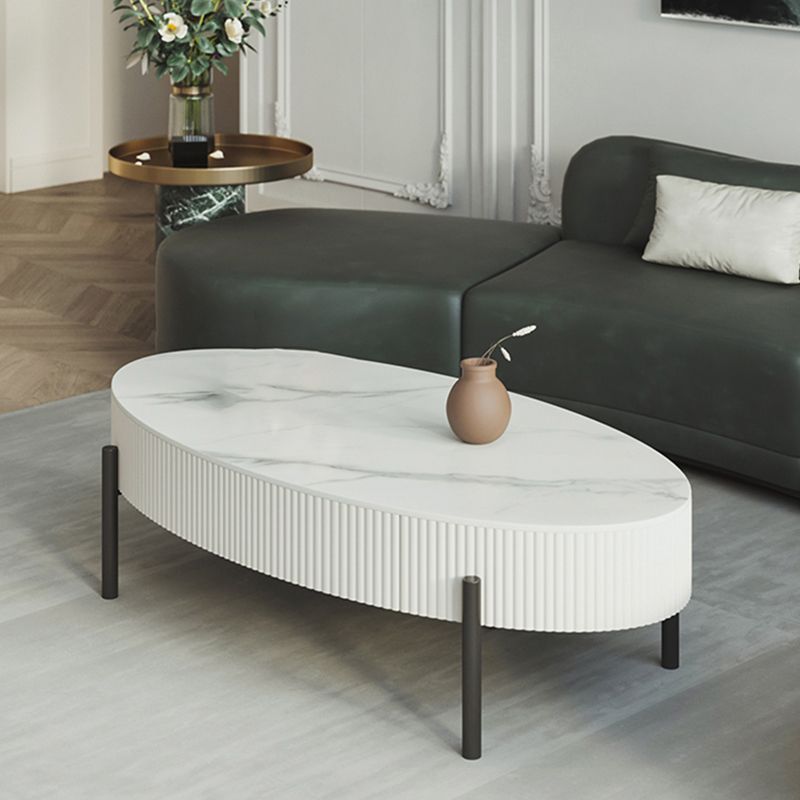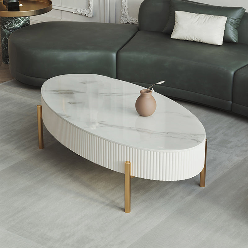 Glam Oval Stone Top Coffee Table with 4 Legs and 1 Storage Drawer