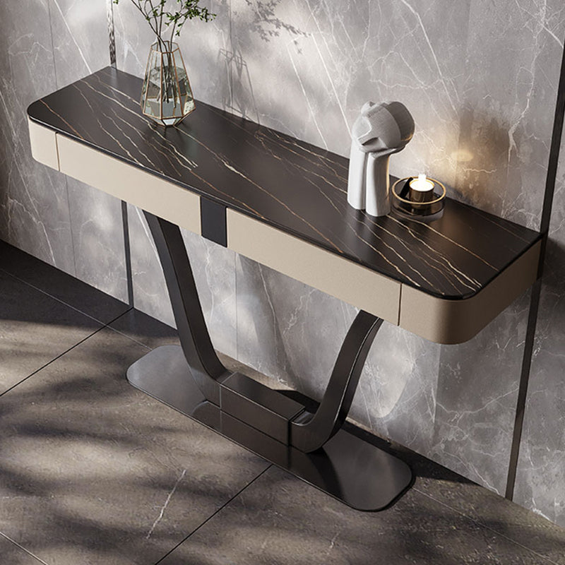 Glam Stone Accent Table 14 Inch Wide Console Table with Drawers