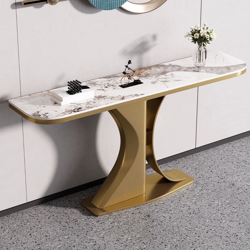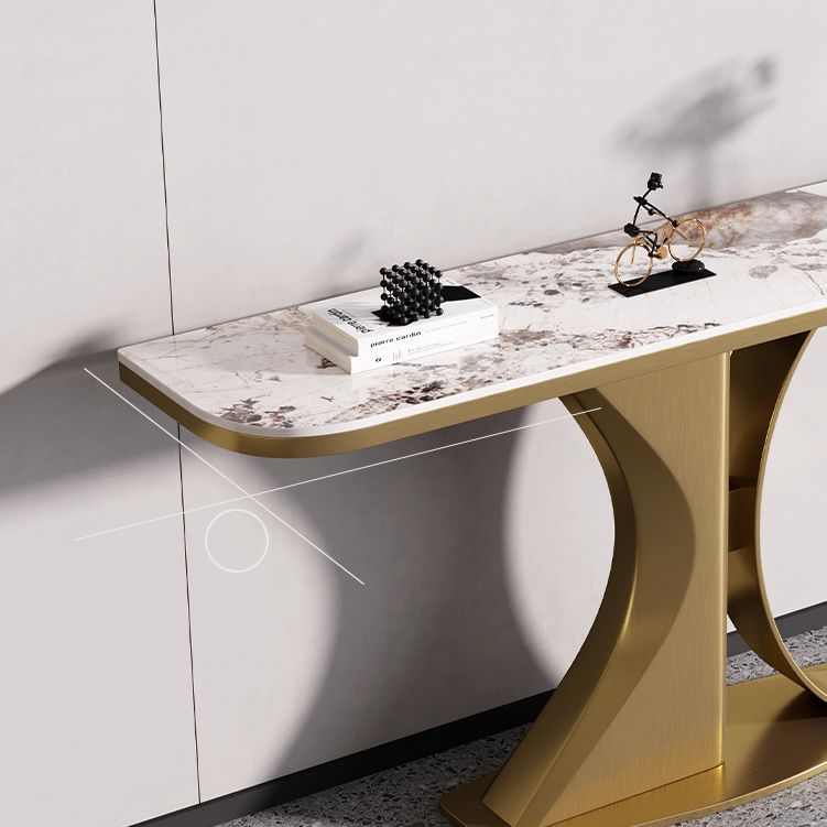 Glam Stone End Table Half Moon Console Accent Table for Hall