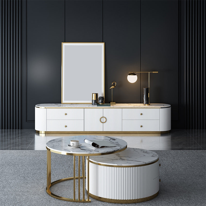 Glam TV Media Console Enclosed Storage Stand Console with 4 Drawers