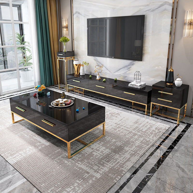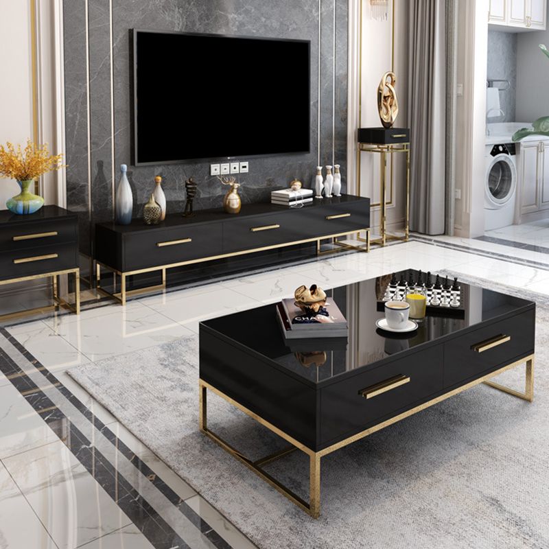 Glam TV Media Console Glass Media Console TV Stand with 3 Drawers