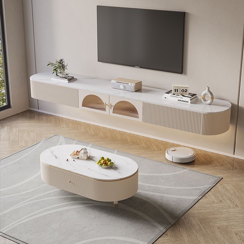 Glam TV Media Stand Stone 12" W Wall-mounted TV Stand Console with Drawers