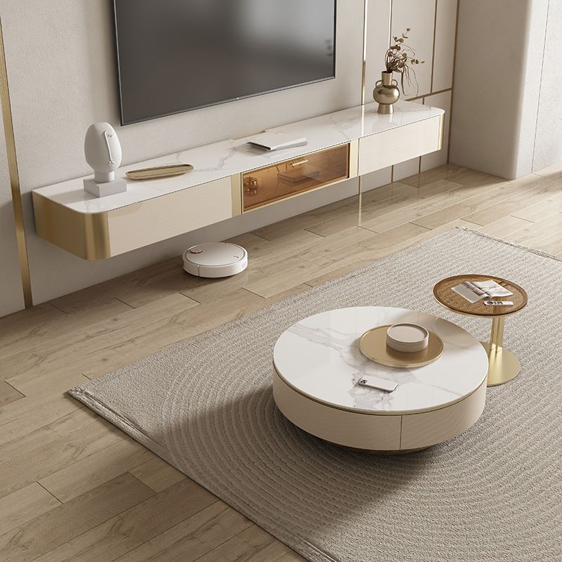 Glam TV Media Stand Stone Enclosed Storage TV Stand Console with Drawers
