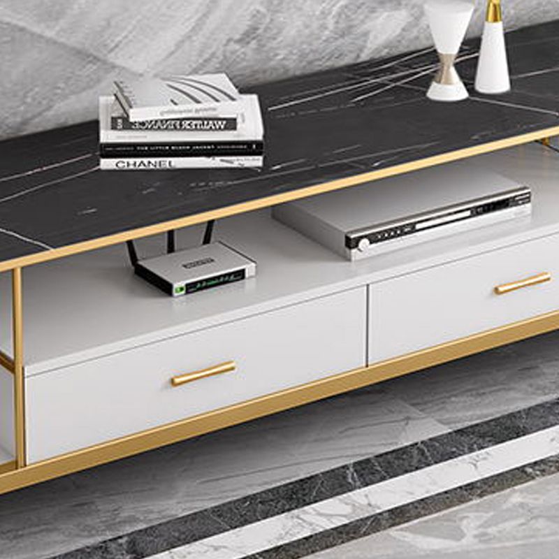 Glam TV Media Stand Stone Open Shelving TV Stand Console with Drawers