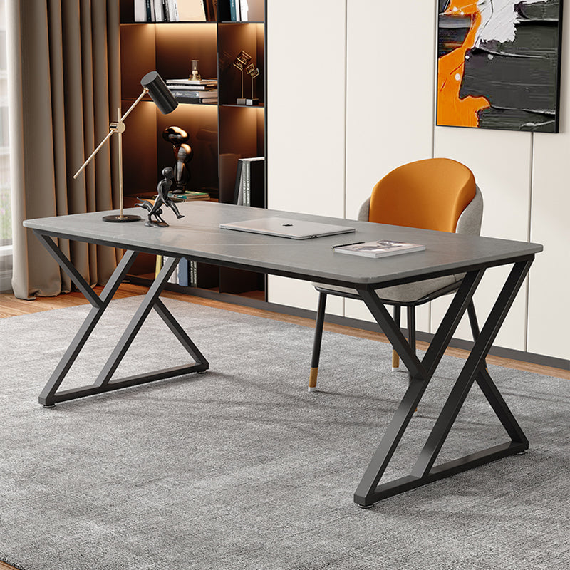 Grey Rectangular Writing Desk Bedroom Office Desk with Metal Legs