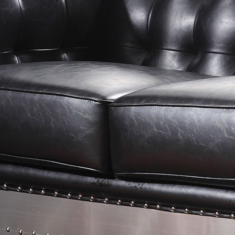 Industrial Biscuit Back Seating Tuxedo Arm Sofa in Black for Apartment