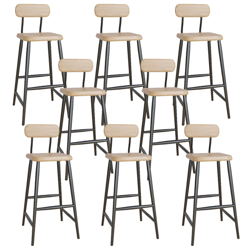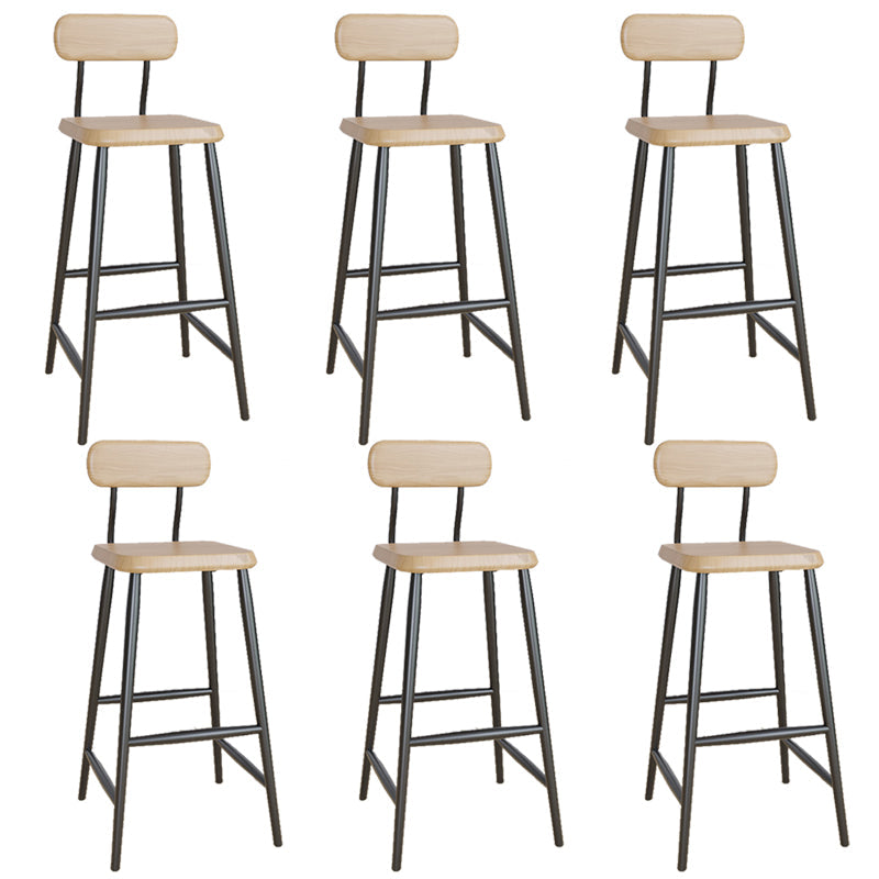 Industrial Square Bar Stool Solid Wood Armless Bar Chair with Metal Legs