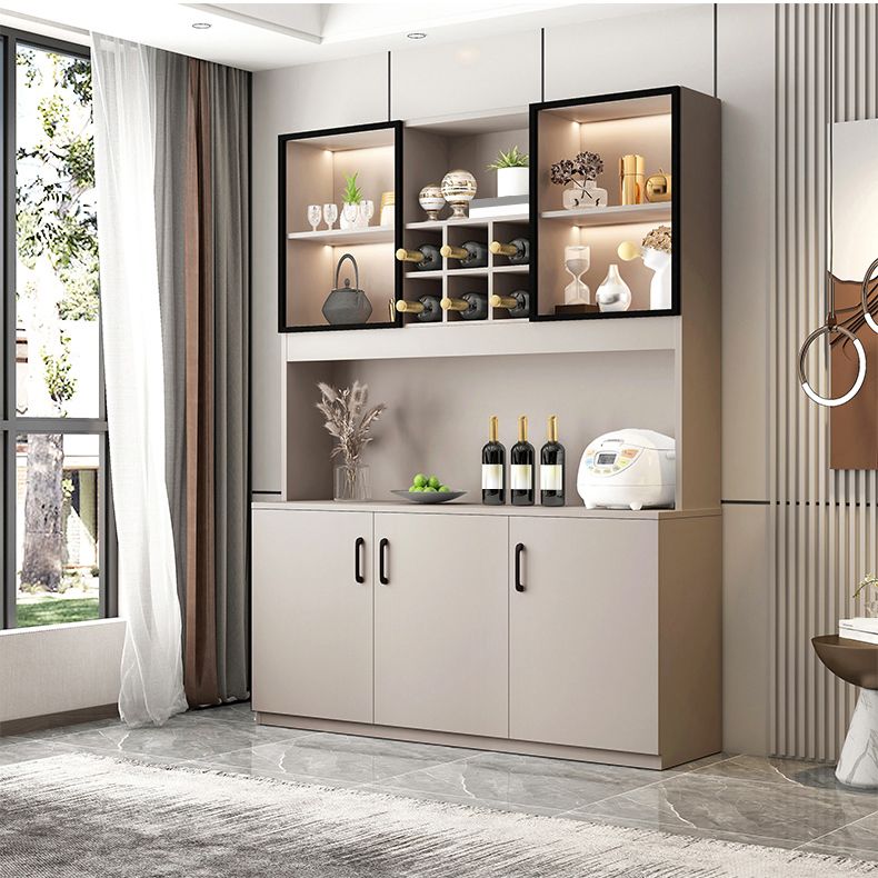 Manufactured Wood Modern Bottle Holder  Floor Glass Door with Storage Shelves