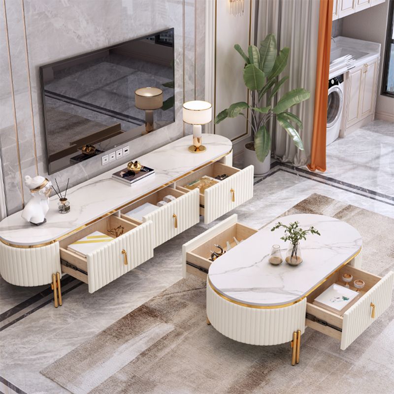 Marble TV Media Console Glam Media Console TV Stand for Living Room
