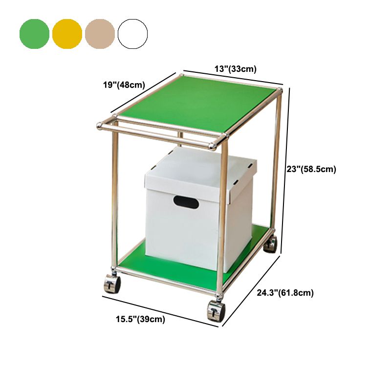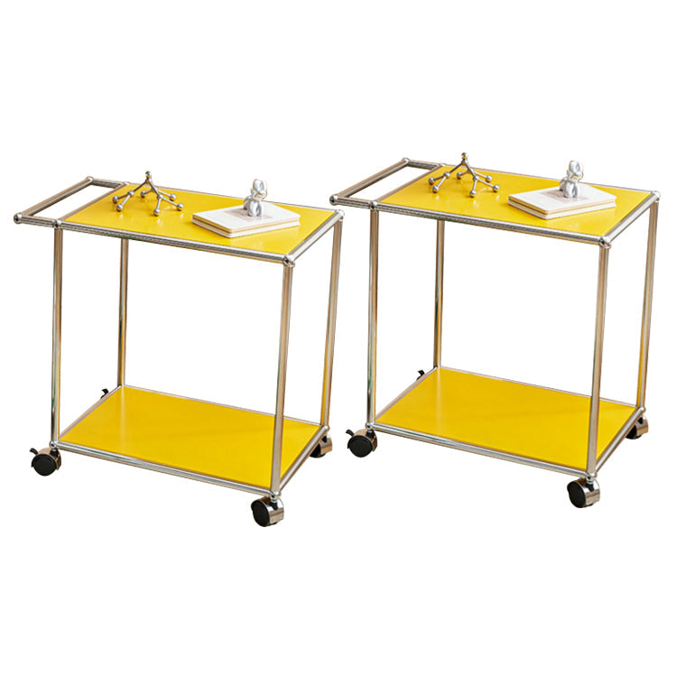 Medieval Modern Style Rectangular Metal Side Table with Wheel Base Design
