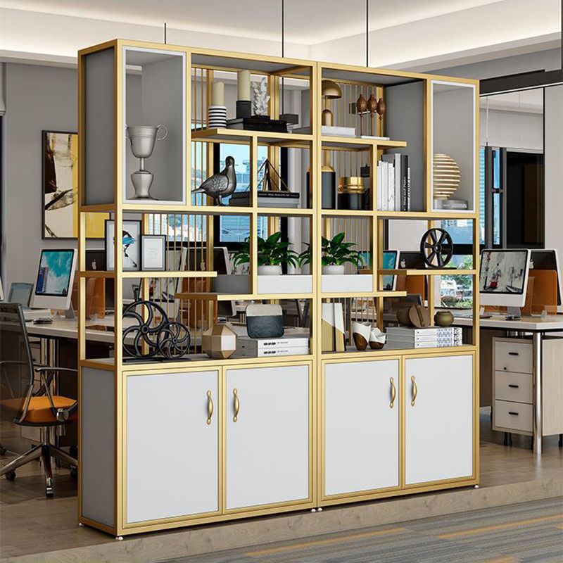 Metal and Wooden Shelf Bookcase Vertical Open Home Book Shelf with 2 Doors