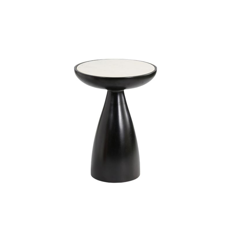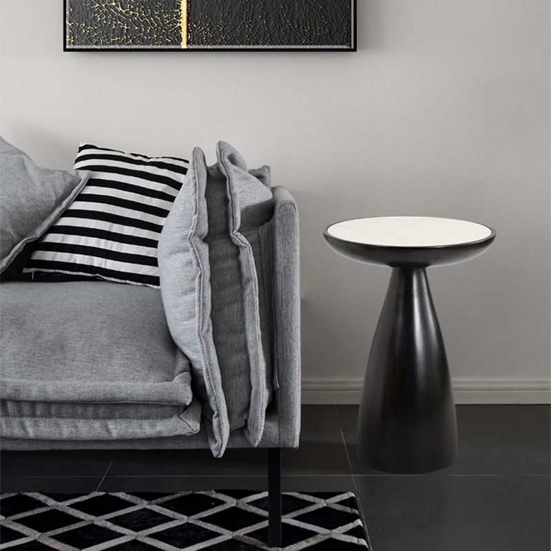 Mid-Century Modern Marble Round Top End Table Solid Wood Pedestal Side Table