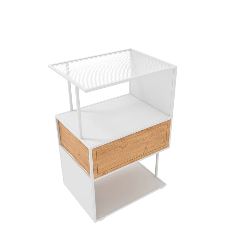 Modern Glass Top Night Table Open Storage 24 Inch Tall 1-Drawer Shelf Included Nightstand