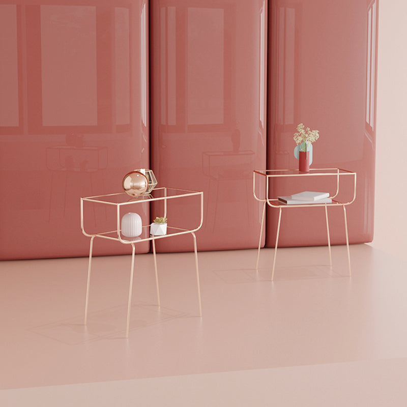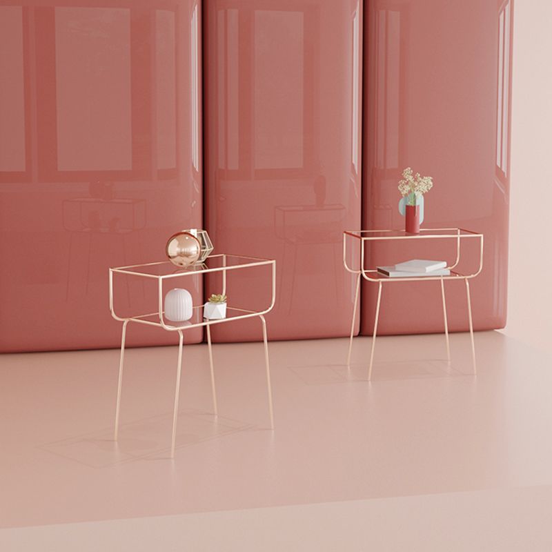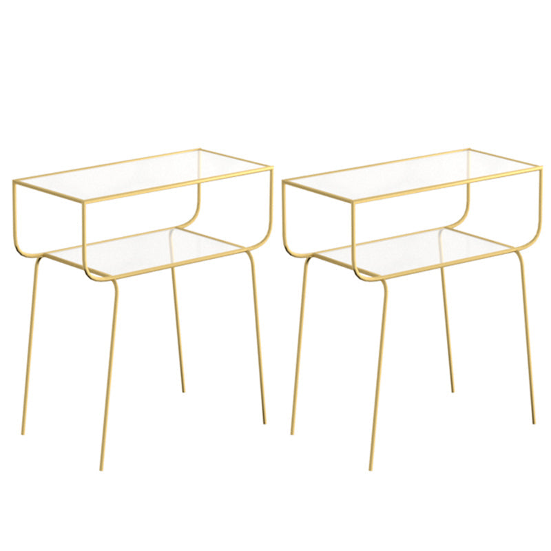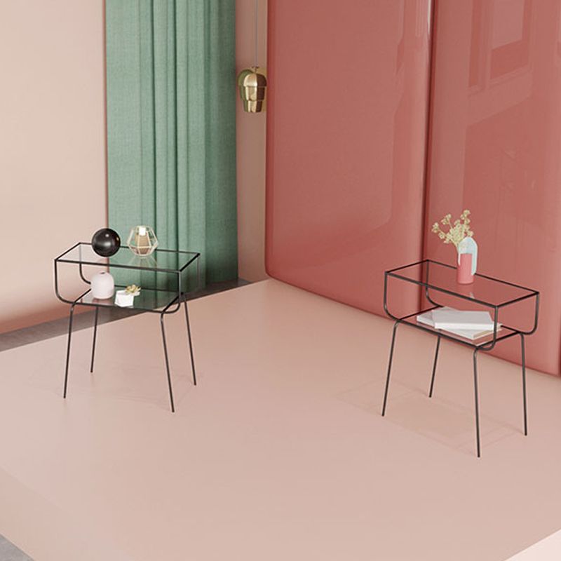 Modern Glass Top Night Table Open Storage Nightstand with 4 Legs for Bedroom