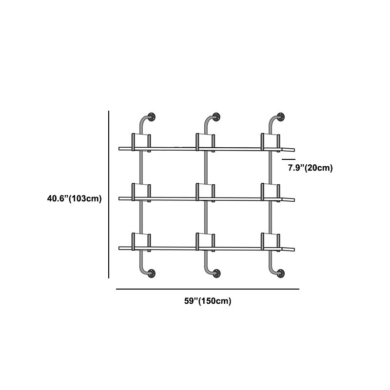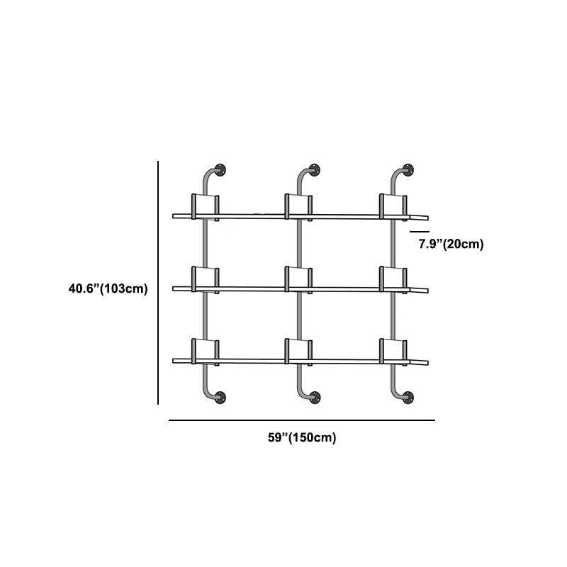Modern Metal and Wood Bookcase Walnut Floating Bookshelf for Living Room 7.9" W