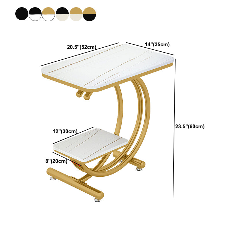 Modern Rectangle Slate Top End Table 23.6" Tall Iron C Side Table with Shelf