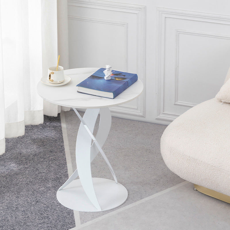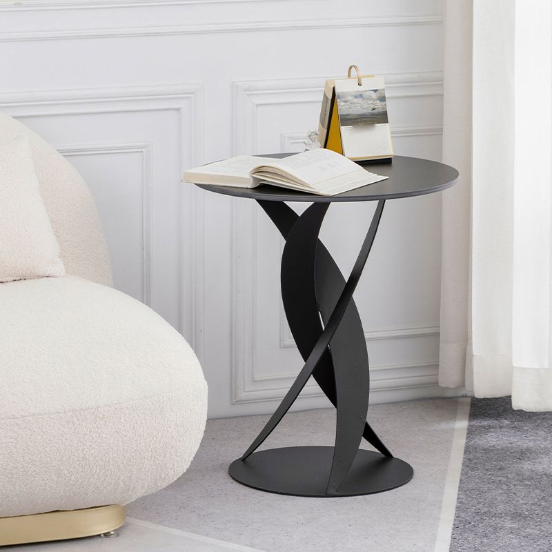 Modern Round Slate Top Side Table 22.4" Tall Metal Abstract End Table