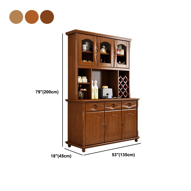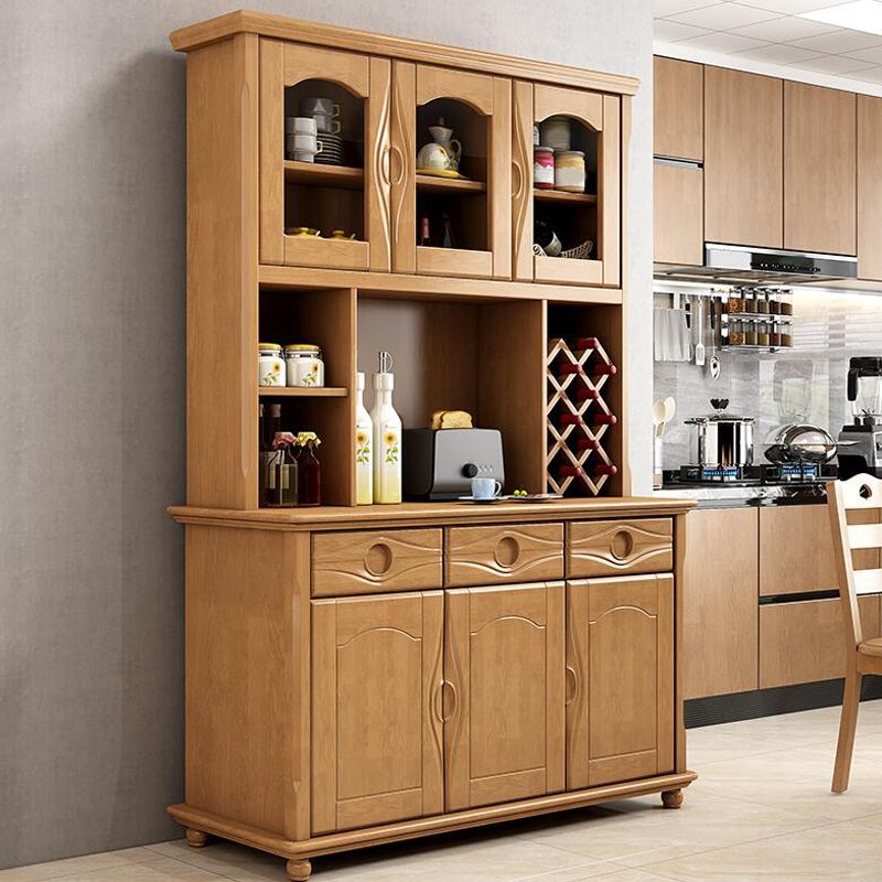 Modern Rubberwood Display Stand Glass Doors Hutch Cabinet with Drawer