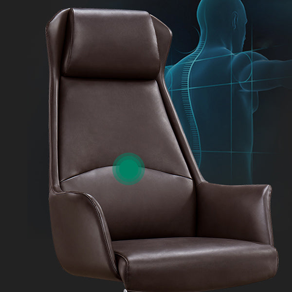 Modern Slide Mid-Back Office Chair Brown Faux Leather Managers Chair