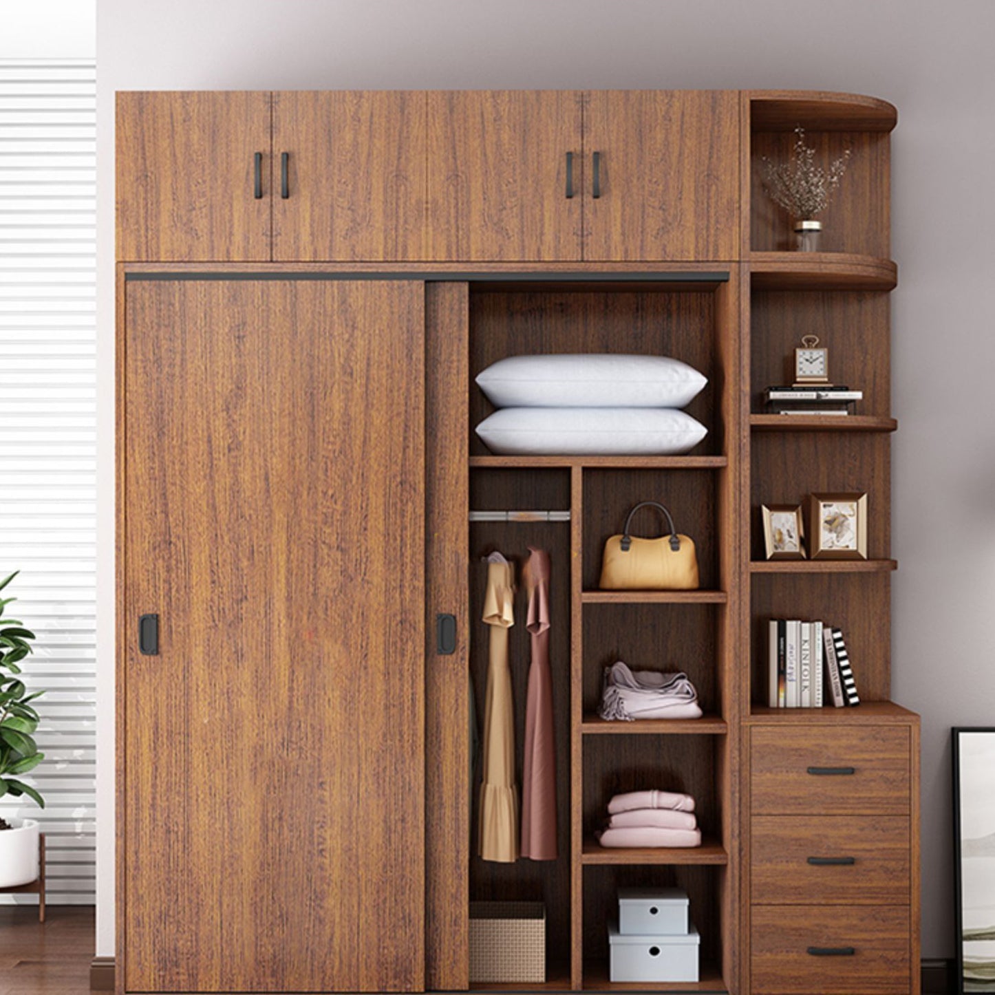 Modern Sliding Doors Wardrobe Wood Frame Freestanding Wardrobe Armoire