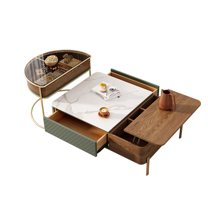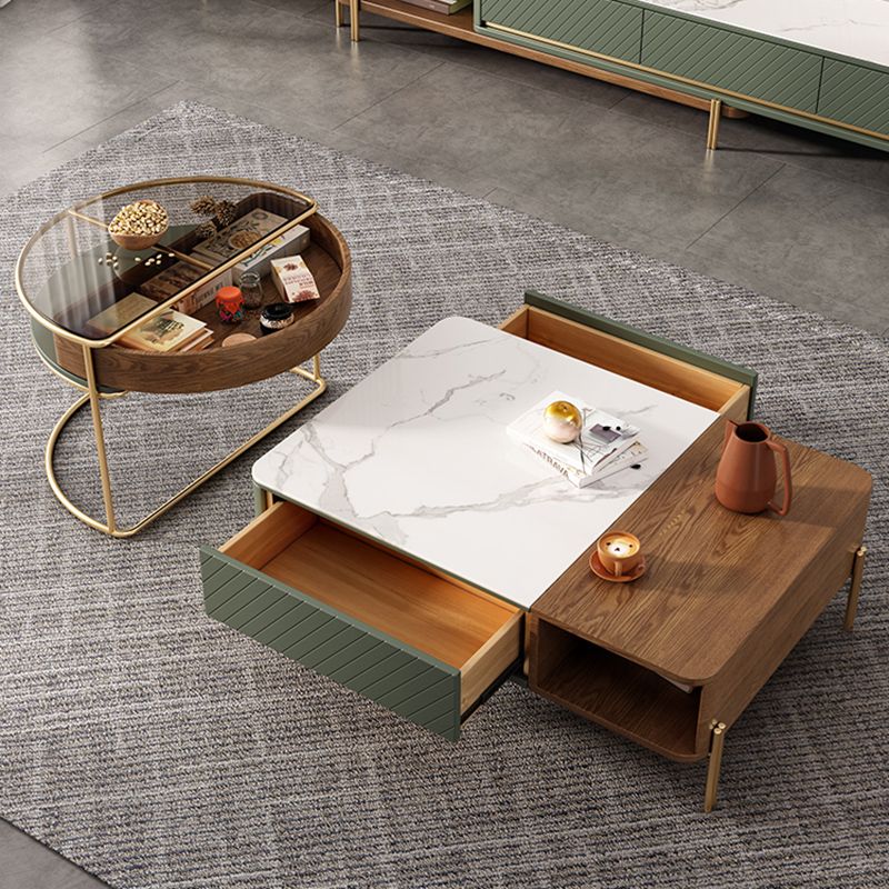 Modern Style Paint Craft Green and White Rectangular Round Coffee Table