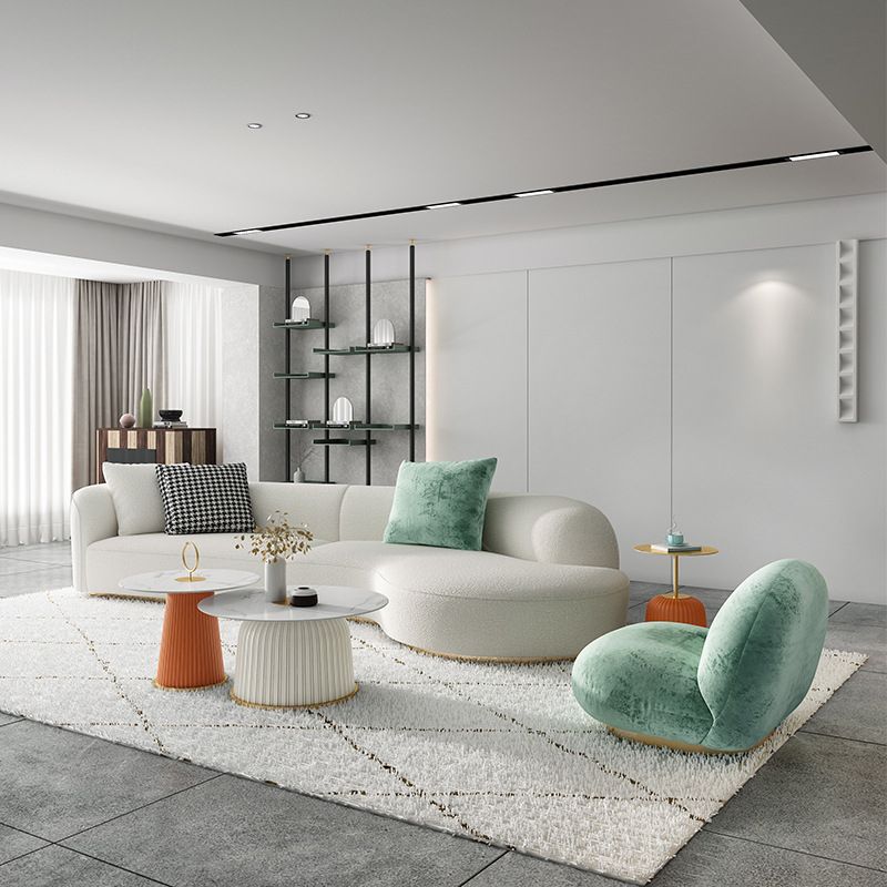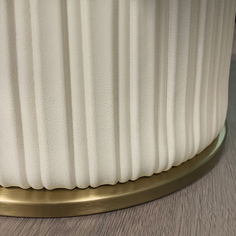 Modern Style Round Coffee Table with Drum Base Metal Design Rock Plate Top