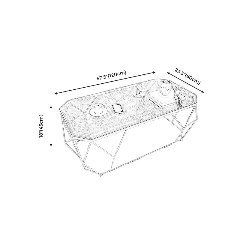 Modern Style Tempered Glass & Slate Bunching Table Metal Rectangular Coffee Table