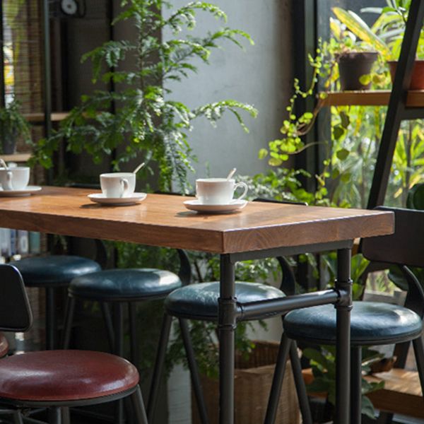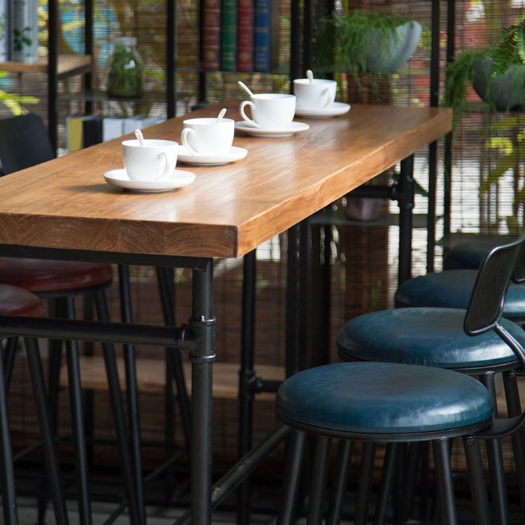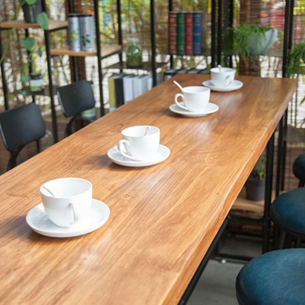 Modern Trestle Bistro Bar Desk Solid Wood and Metal Counter Wine Table for Shop